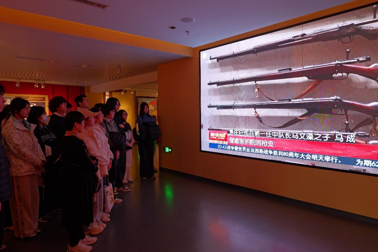 在庄严肃穆的展馆参观区内,大家认真观看了丰富的历史图片、实物展品和文献资料。从冀东抗战燃起的烽火,到地道战战术的巧妙构思与广泛应用,每一段文字、每一件文物都生动再现了革命先辈们在艰苦卓绝的岁月里,展现出的惊人智慧与无畏勇气。同学们时而驻足凝视,时而低声交流,深刻感受到了那段波澜壮阔的抗战历史和不屈不挠的民族精神。